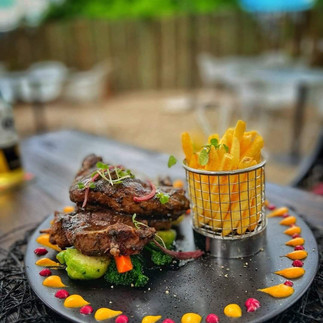 The menu includes hearty main dishes and fine-dining style meals. For example, one source mentions “slow braised whole lamb neck marinated in red wine” and “tender pork chops”. It also serves more casual café style fare: according to some listing it has burgers, salads and Western-style dishes.